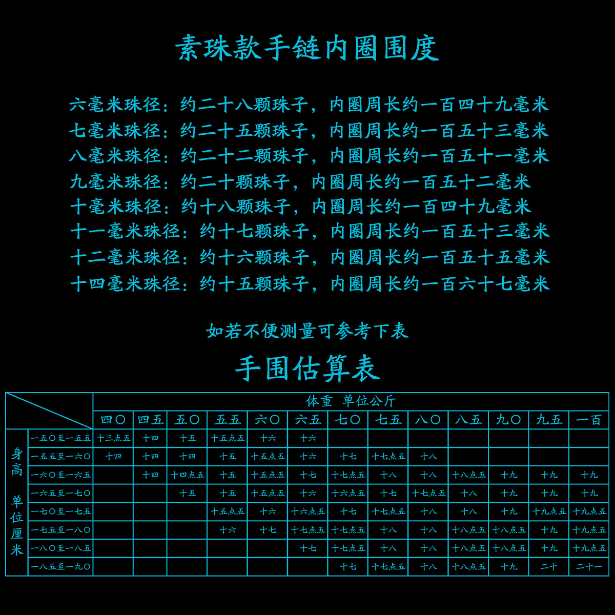 We count 15 cm or 5.9 inch length as the default size of wrist. If you want to other size, please let us know when you buy the items. We measure the item by hand, so the size may be inaccuracy.